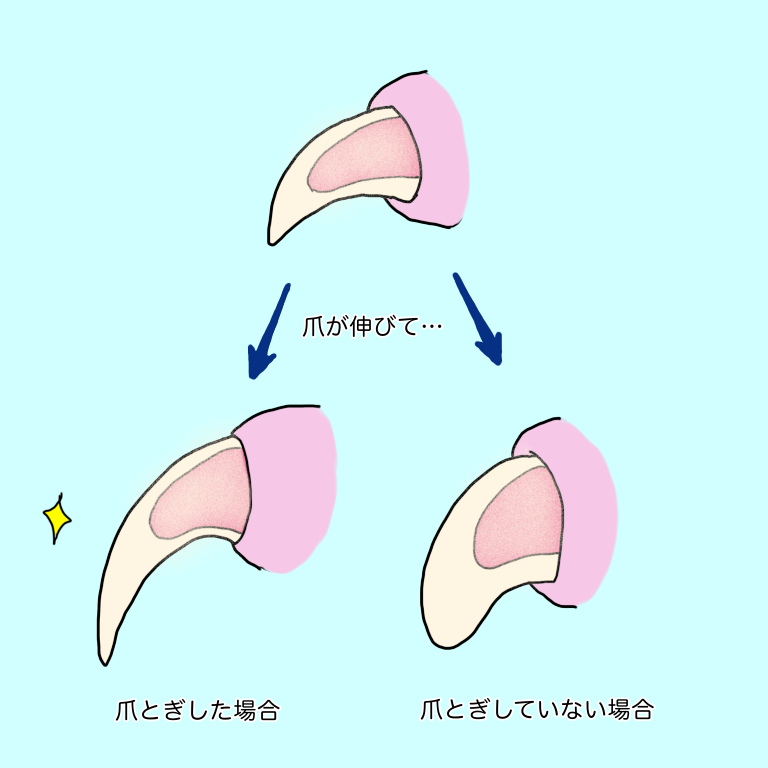 ネコは爪とぎをすることで爪を短く、鋭く保ちますから、爪をとがなくなれば自ずと伸び続けてしまいます。