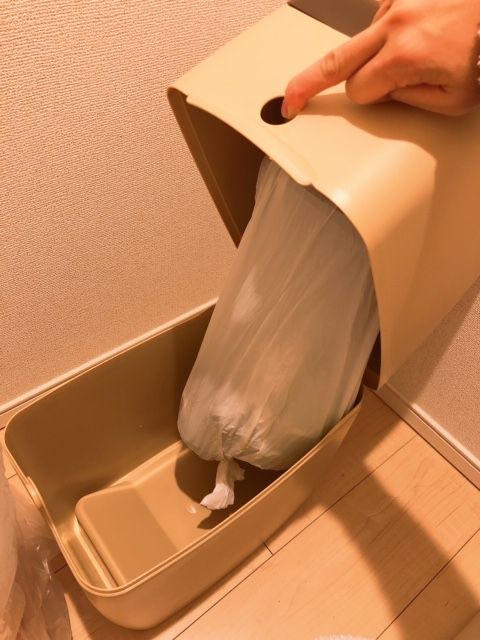 中はこのようになっていて、貯まってきたら中に付属されているカッターで口を切って縛って捨てるだけ。
